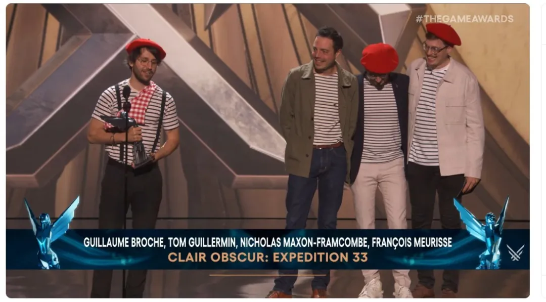 Son équipe, presque au complet lors de la remise des prix le 11 décembre, est montée sur scène vêtue de costumes inspirés de l’univers du jeu : bérets rouges, marinières, bretelles noires et écharpe à carreaux rouges et blancs en bandoulière, ce qui était au départ « supposé être une blague » selon Guillaume Broche, le directeur créatif du jeu. Ce moment inoubliable aura donc permis un clin d’œil humoristique à l’un des costumes très français créé pour les héros du jeu.