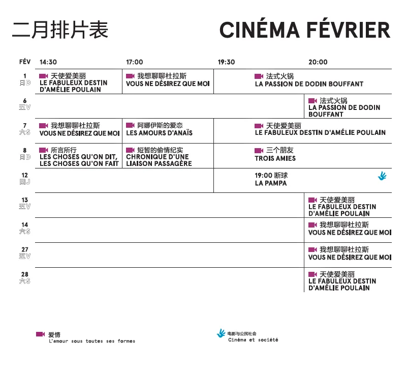 En février, mois de l’amour, l’Institut français de Pékin vous propose une sélection de sept films explorant les multiples visages de l’amour et de la passion amoureuse, des récits où se déploient sentiments, désirs et jeux de séduction.