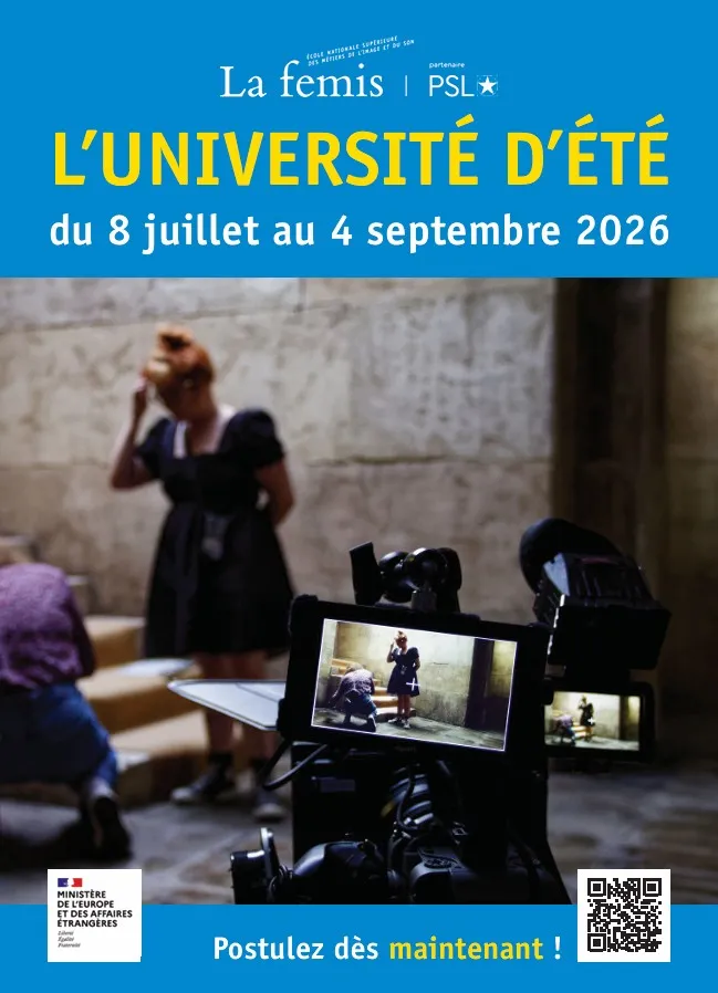 Vous êtes jeune cinéaste ou étudiant(e) en cinéma ? Candidatez pour l’Université d’été 2026 de La Fémis (école nationale supérieure des métiers de l’image et du son) ! Ce programme permet d’accueillir 15 jeunes réalisateurs ou étudiants en cinéma non-européens souhaitant compléter leur formation, leurs connaissances techniques et perfectionner leur pratique du cinéma documentaire en France.