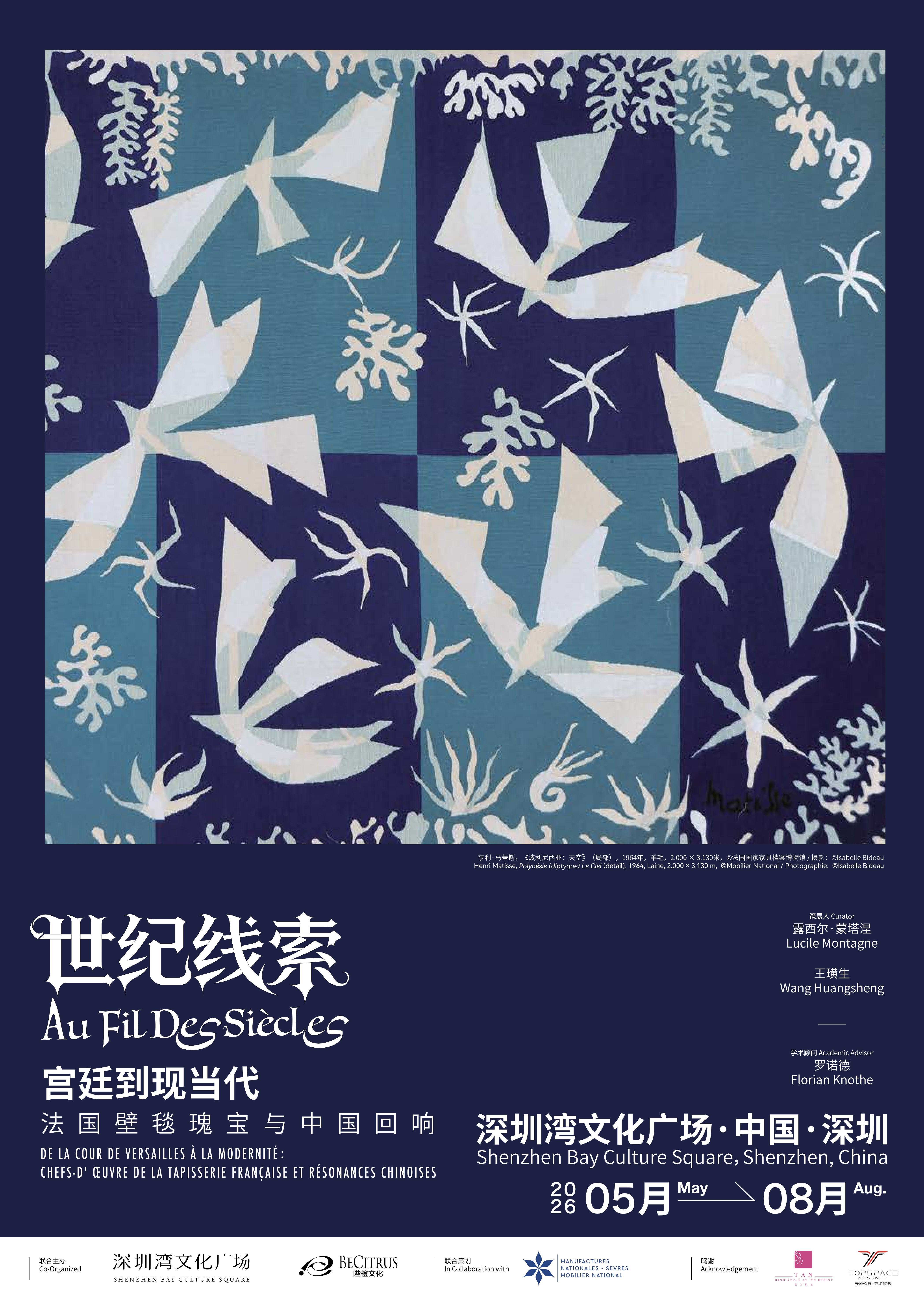 在“中法文化之春”之际,由深圳湾文化广场与法国国家家具档案博物馆及国家工坊(Manufactures nationales – Sèvres & Mobilier national)联合呈现,露西尔·蒙塔涅与王璜生联合策划的《世纪线索:宫廷到现当代——法国壁毯瑰宝与中国回响》,展览集结超40件法国国宝级壁毯艺术珍品,其中更含路易十五赠予乾隆皇帝的同系列孤品壁毯,见证近三百年的中法文化渊源。